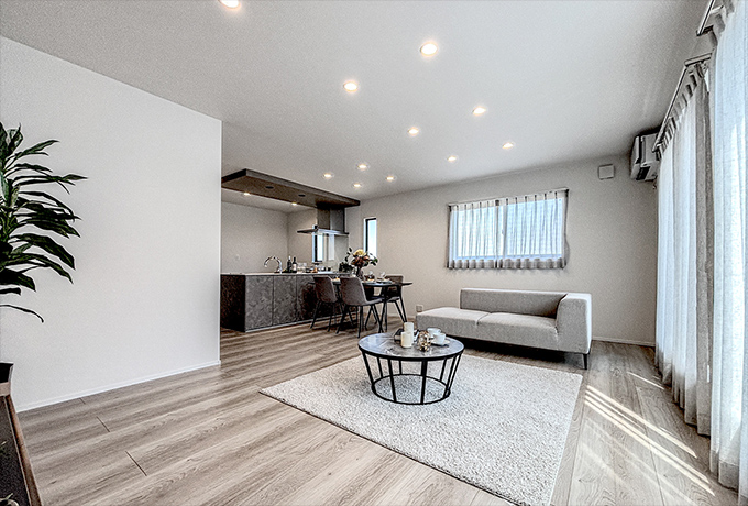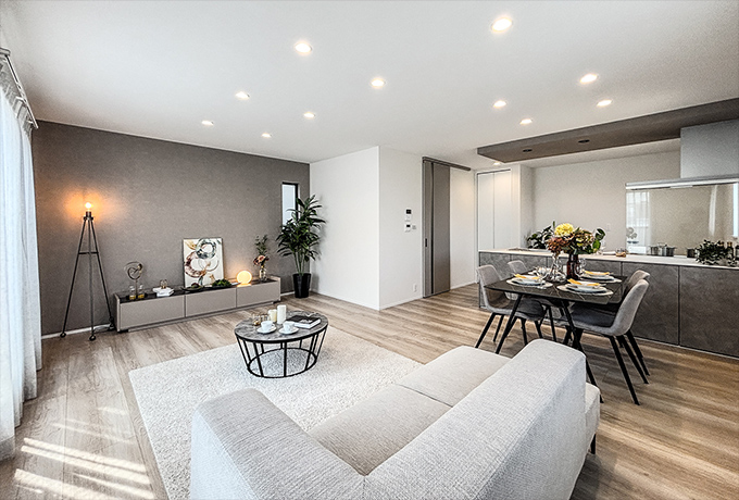 50坪超の敷地面積。20帖のLDKや家事動線を考慮したランドリールーム・大容量のファミリークローゼット、LDKから続く一階洋室は家族全員の暮らしを快適にする理想の住まいです。