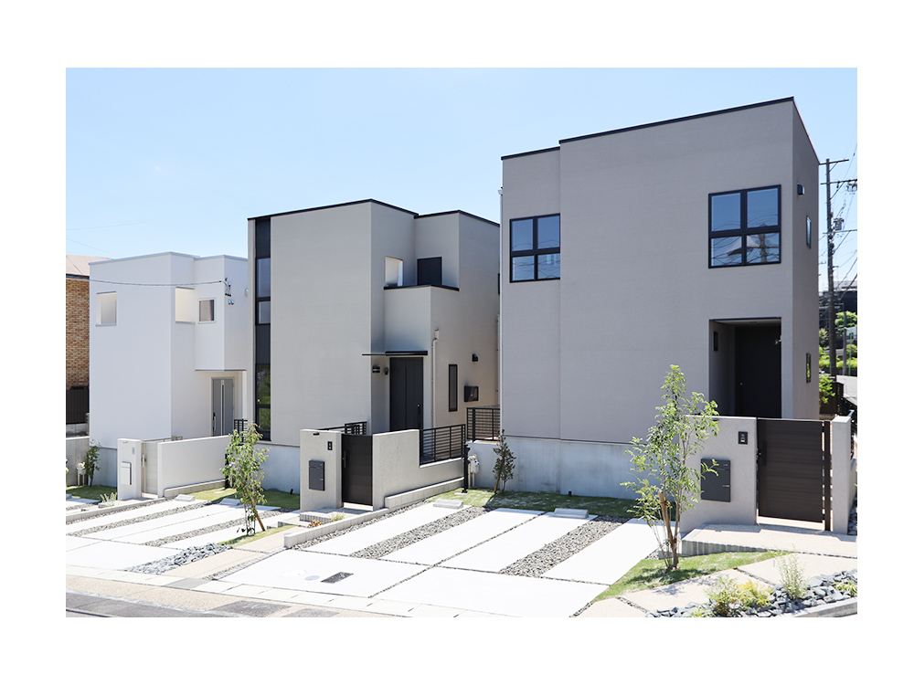 名古屋市東部から長久手まで見渡せる高台のロケーション。目前の公園のゆたかな緑と調和する全4邸。リビングにスタディコーナーを設け、勉強や趣味など「プラスの価値」をプランニング。