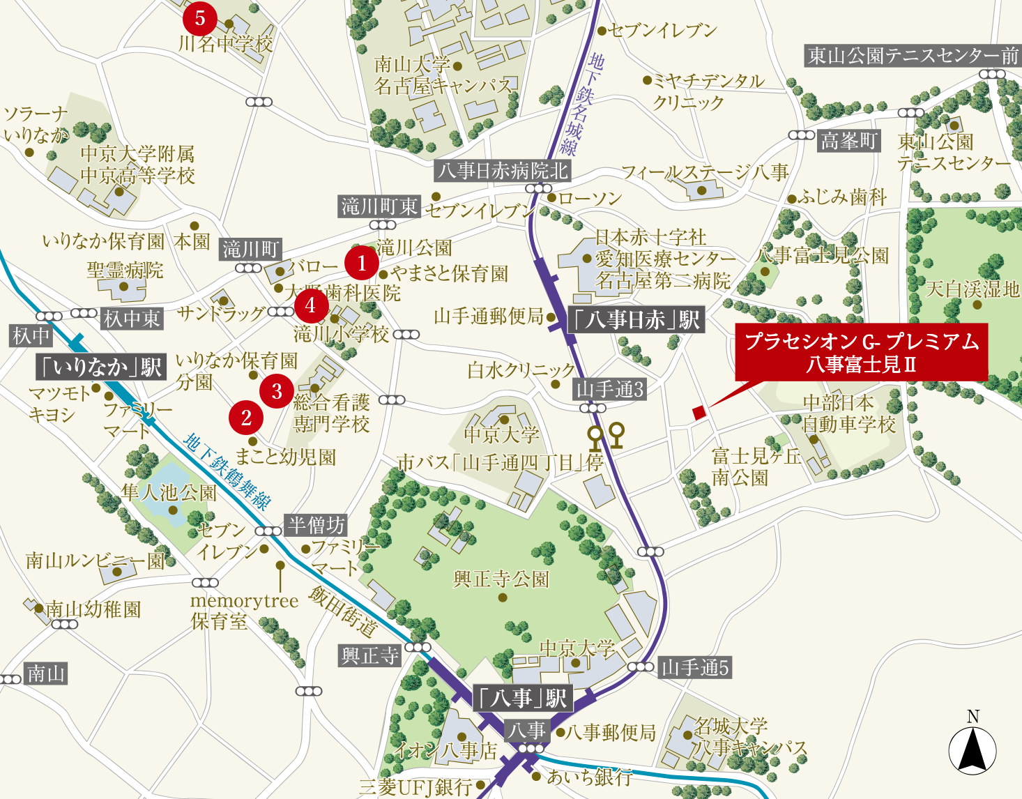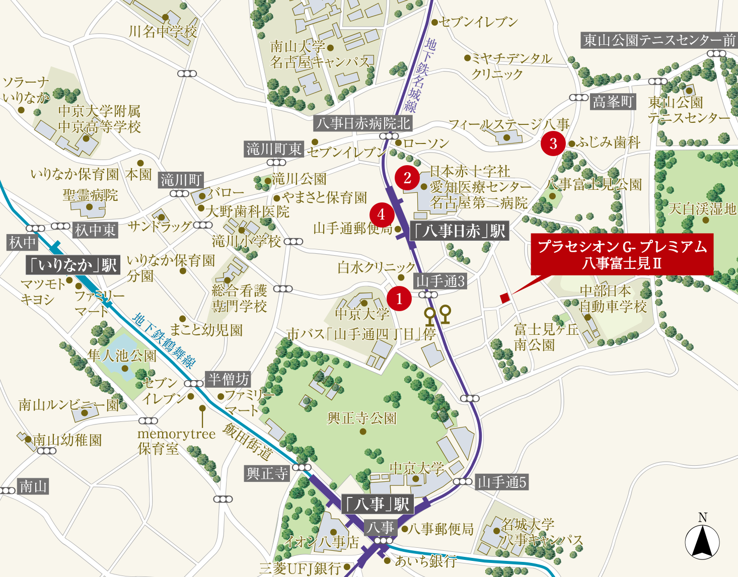 地下鉄名城線「八事日赤」駅 (現地より約470m〜480m 徒歩6分)